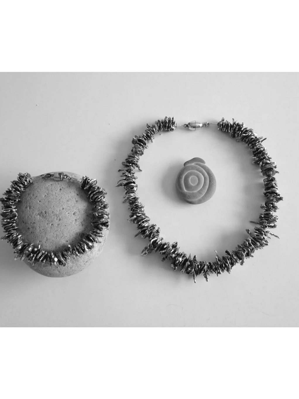 Chaque pièce UMAIN naît dans la fusion intense de l'argent pur, entre feu et finesse. Un hommage à ce que la matière a à dire. Composés d'argent 9.25, de matériaux de la terre et de la mer.